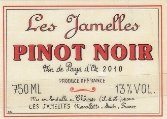 - (赤):フランス LES JAMELLES PINOT NOIR VIN DE PAYS D'OC (2010)