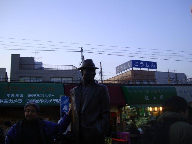 帰りの柴又駅前広場には寅さんの銅像がありました。ちなみに、記念写真を撮っているおじさんは私ではありません。