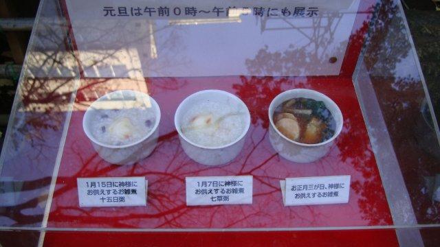 稲荷鬼王神社の境内には、沢山の家庭から集めたお雑煮の写真が張り出されています。よくぞこれだけの種類があるもんだと驚かされます。ちなみに、この神社では神様にもお雑煮をお供えするそうです。喉に詰まらなければいいのですが。