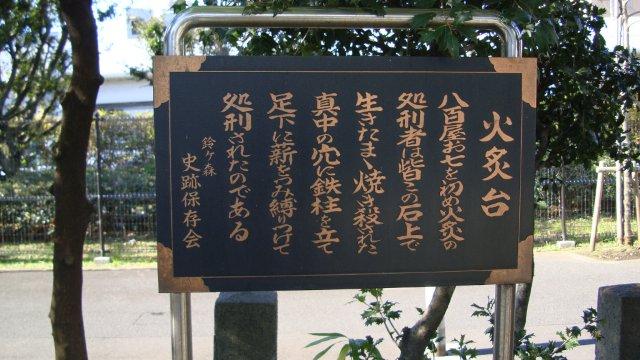 八百屋お七は江戸本郷の八百屋の娘で、恋人に会いたい一心で放火未遂事件を起こし火炙りにされたそうです。