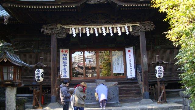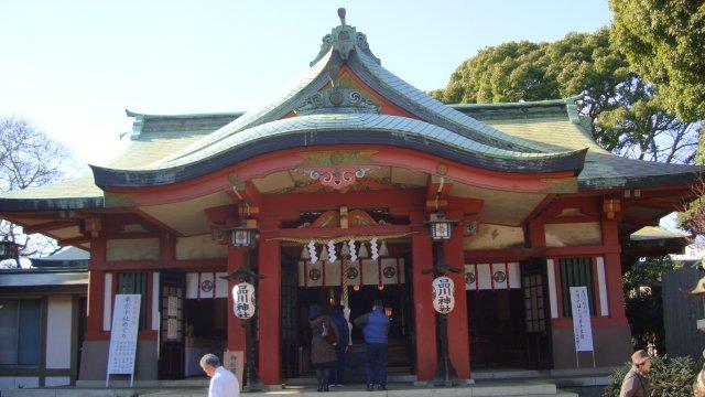 目黒川畔に佇む荏原神社には恵比寿神が祀られています。
