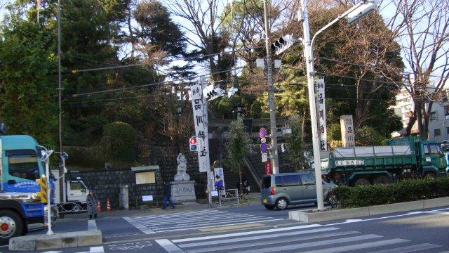 品川神社は第一京浜に面した小高い丘の上にあります。急な石段を登るのはお屠蘇を飲みすぎた参拝者には少々辛いですね。