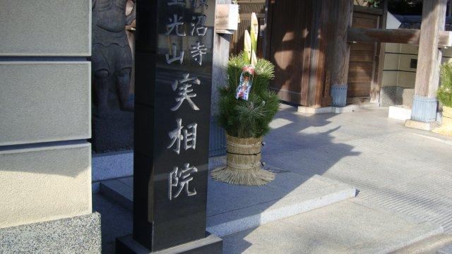 実相院は広い道路に面していて、直ぐに見つかりました。本堂には七福神の幟が掲げられているだけで、ガラス戸は閉まっています。
