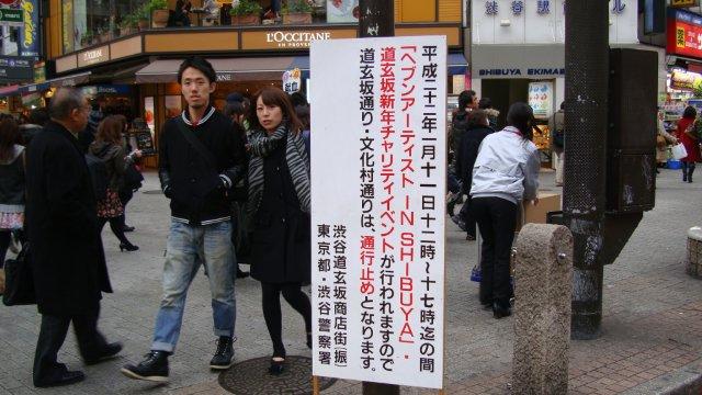 長泉寺から長谷寺に向かう途中で、渋谷の道玄坂に寄り道します。109前の通りは人で溢れています。道路の真ん中で大道芸人らしきパフォーマンスもやっています。「ヘブンアーティスト IN SHIBUYA」とかいう催しで、道玄坂と文化村通りを閉鎖しているのだそうです。ヘブンアーティストとは、石原都知事により創設された大道芸人公認制度のことで、ライセンスを持つと渋谷に限らず都内の公共の場所で大道芸を披露できるのだそうです。