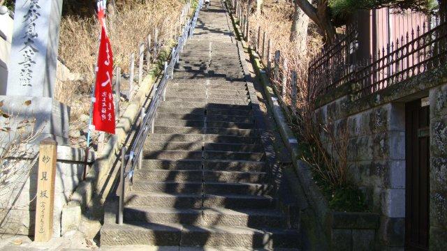 妙見坂を登るのも大変ですが、降りるのも一苦労です。結構傾斜が急なので、用心して一歩一歩足を踏み出して慎重に降りていきます。