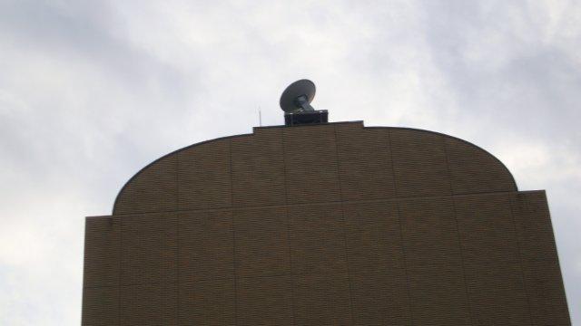 富坂上には中央大学理工学部の建物が並んでいます。ふと屋上を見上げますと、大きなアンテナがレーダーで天空を探索するようにグルグル動いています。かなりの早さで回転していますね。何の研究なのでしょうか?