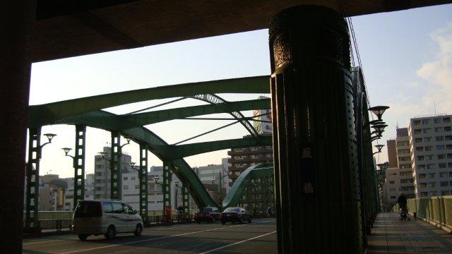 隅田川を渡りますと、路地の間に東京スカイツリーの雄姿が見えます。下町の低い家並みと対照的な高さです。現在の高さが289mだそうですから、この倍以上に成長するんですね。倒壊したらタワーの先端がバスに届くかも?