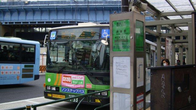 今日はランキング第二位である「都01」路線を歩くことにします。都01は路線番号からしても都営バスの最主力路線です。また、都市新バス第1号の路線で、「グリーンシャトル」の愛称でも呼ばれています。渋谷から西麻布・六本木・赤坂方面に出るには便利な路線です。沿道にオフィスが多くありますので、朝夕は通勤客で混みあいます。都01の乗り場は、渋谷駅東口の地下鉄副都心線出口の真ん前にあります。さすがVIP待遇ですね。大きな案内板に路線図が書かれているのですが、マスコットキャラクターの「みんくる」君も一緒です。都バスの停留所には、殆どみんくるの表示があります。みんくるの図柄は一般公募により誕生したもので、都バスのフロントをデフォルメし、そこに東京都の頭文字「T」をデザインしたのだそうです。名前の由来は、「みんなのくるま」とか「都民の車」を縮めたもので、都バスがいつまでも都民の頼れる足でありたいという思いが込められています。お散歩も勉強になるもんですね。