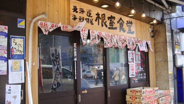 東口の旧東急文化会館跡地は現在も基礎工事が行われています。随分と長く続くなぁと思っていたのですが、地下に副都心線の駅を造っていたんですね。今は本体工事に入ったようで、完成の暁には地上33階建、高さ188m、床面積は14万平米超の巨大高層ビルになるそうです。渋谷の風景はどうなるのでしょうか?新橋駅前の広場入口に根室食堂があります。たまたま昨夕のテレビ番組に出ていたのですが、根室・羅臼直送の海産物・農産物を使った激安メニューを売りにしています。安いだけでなく、地元と協業して良質な食材を仕入れているそうです。店先には木箱に入った蟹や貝類が並んでいます。サンマ定食480円は新橋界隈でもそうはないでしょう。
