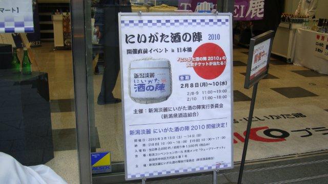 隣は新潟の物産館ですが、通常の商品は外され、「にいがた酒の陣2010」という催しが行われていました。どうやら新潟の地酒が試飲できるようですが、飲んだらお散歩は中止となりますのでパスします。
