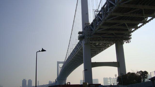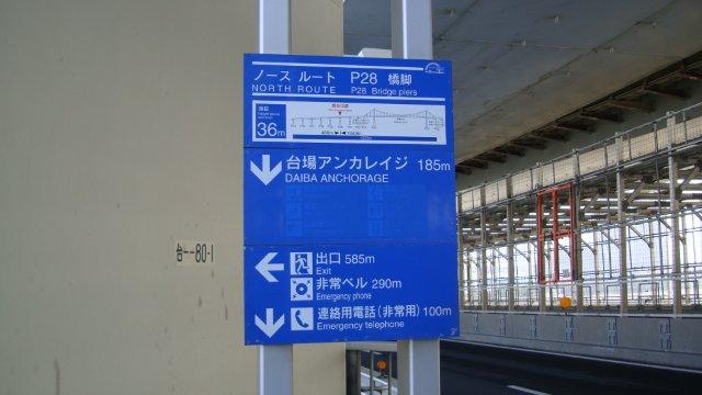 海岸通りを通って、芝浦ふ頭の先端に出ます。レインボーブリッジを支える巨大な芝浦アンカレッジのエレベータで7階に登ります。
