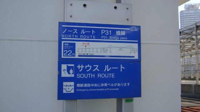 今日はノースルートを歩きます。風もなく歩きやすいですね。ノースルートは東京の中心部を眺めるのに適しています。橋上からのベストビューポイントはP28橋脚のあたりだと思います。防護網がなく、2本の主橋脚と中央部が盛り上がった橋桁が一望できます。あとはP31あたりもいいですね。ちなみに、レインボーブリッジを渡るのに要する時間は30分弱です。風のない晴れた日に歩くのがお勧めです。
