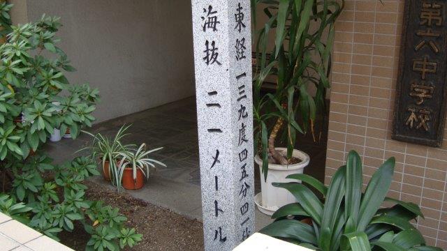 本郷追分バス停の手前に文京六中があります。門の中に卒業記念の石柱があり、経度・高度が記されていました。東経139度45分41秒、海抜21メートルだそうです。東京湾から随分と離れていると思うのですが、たった21メートルの高さしかないんですね。東京が如何に平坦か思い知らされます。