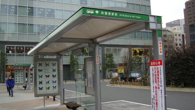 今日はランキング第十三位である「秋26」を歩くことにします。「秋26」は、東京23区の東端に位置する葛西と世界のアキバを直通で結ぶ希少な路線です。と同時に、隅田川と荒川&中川という東京の二大河川を渡ります。アキバ発着の路線は少ない上に、葛西駅まで長距離を走るというところが凄いですね。今日は殆ど曇り空で、気温も上がらず寒い一日でした。秋葉原駅周辺は大規模な再開発が行われた結果、バス路線がよく分からなくなりました。「秋26」のバス停を探すのも一苦労です。ヨドバシAKIBA店の向かい、TX(つくばエクスプレス)秋葉原駅の隣の広場に発着所が見つかりました。都バスのバス停には、最近屋根付きの新型停留所が増えていますが、ここもピッカピカの新型です。秋葉原駅前広場の整備によって、新たに設置されたのでしょう。
