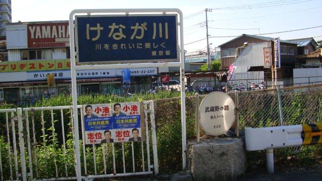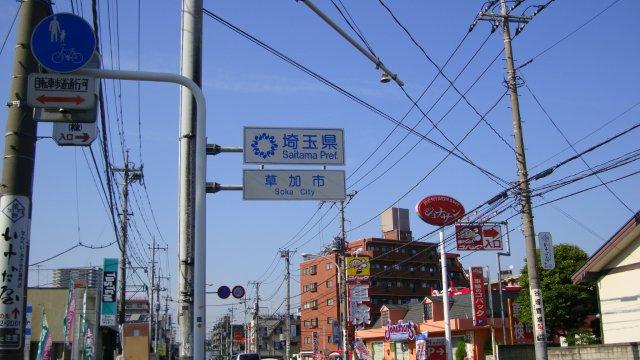 旧日光街道は足立清掃工場の先の毛長川橋前の交差点で日光街道(国道4号線)と交差します。4号線を進めば草加バイパスですが、旧日光街道は水神橋で毛長川を渡って北上します。毛長川は東京都と埼玉県の境界をなしています(所々で入り組んでいますが)。水神橋の袂には「武蔵野の路 舎人コース」の標識があります。5年ほど前に通ったところですが、橋を越えると埼玉県草加市です。遂に埼玉県内にまで足を踏み入れました。毛長川がルビコン川に思えてきます。