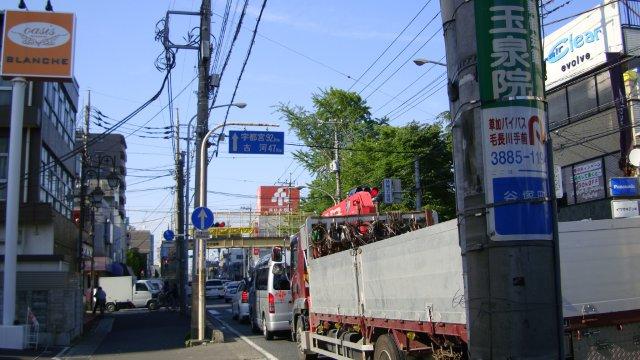 谷塚交差点の手前に、古河まで47kmという道路標識が見えます。芭蕉は出立の翌日には古河の先まで進んでいたそうですが、夕方になりましたし、今日はこの辺りで中断するのが適当でしょう。日本橋から谷塚交差点までは18km弱でした。この先、どこまで行けるのでしょうか?