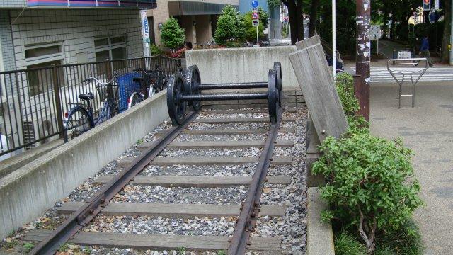 ちょっと歩いた先に、堅川人道橋の説明板が建っていました。昔、ここに路面電車が通っていたとのことで、今でもレールの跡が残り、電車の車輪(複製)が展示されています。現在では亀戸緑道公園となっていて、緑深い遊歩道が延びています。