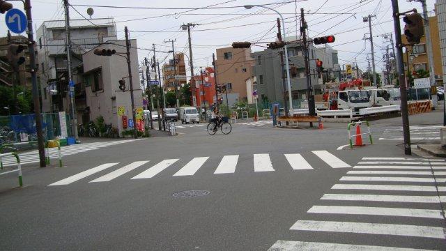 アーケード先から真っすぐ斜め下に向かって進みます。ここから西武池袋線の江古田駅までは車も少なく、とても歩きやすいです。特に板橋高手前では桜並木が続いていますので、お花見シーズンには最高と思います。尚、板橋高の先は七差路になっています。大田区にある七辻交差点には信号機はありませんが、この交差点には付いています。信号機が幾つもあるので、初めて通るドライバーはどれを見たらいいか迷ってしまうかも。
