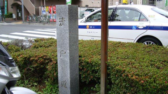 九州南部は大雨続きだというのに、関東地方はあまり梅雨らしいお天気ではないですね。今日も朝から晴れ渡り、真夏を思わせる厳しい暑さでした。それにもめげず、今日も古代東海道の続きを歩きます。南千住駅から再開するのですが、ここから西日暮里駅までの道のりが判然としません。一応、常磐線の北側を歩き、三河島駅の先から高架をくぐって尾竹橋通りに出るみたいですが、正確なルートは分かりません。ま、千年以上も前に造られた道ですから、現在の道路と一致する訳はないのですが。とりあえず、南千住仲通りという古びた商店街を通って日光街道に出た後、都電荒川線の三ノ輪橋駅を抜けて荒川一中前踏切を越え、明治通りを渡って常磐線沿いの裏通りを線路の土手に沿って進みます。古代東海道は、各国に置かれた国府を一直線で結ぶようにルートが設定されたとのことですが、満足な地図も測量技術もなかった飛鳥時代にしては驚くべき正確さで造られています。試しに東京の広域図を広げて定規を当ててみますと、現在判明してるルートとほぼ重なっています。府中(武蔵国府)から北側に少しカーブしているのは、現在の西ケ原にあった豊島郡衙(ぐんが:律令制下で郡を治める役所)を経由したからではないでしょうか?もともと古代東海道を厳密に辿ることは無理なので、適当に道路を選んで歩きます。西日暮里駅からJR線の線路を眼下に見ながら高台の坂道を登っていきます。坂の上に忠敬堂という古地図専門店があります。江戸時代の地図も扱っているようですが、古代東海道の資料も置いているのでしょうか?