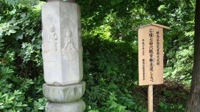 古代東海道は、中村北二丁目から南西に真っすぐ延びていますが、この道は「下練馬道」と呼ばれていたそうです。道路脇のところどころに石像が立っています。ちょっとした草むらの中には、「石憧七面六観音勢至道しるべ」なる七面石柱の道標が立っていました。観音様が彫られていたのは、馬頭観音のように道標を兼ねていたからでしょうか?私には読めませんでしたが、「東 此の方なかの道、めぐろ道」、「南 中村里道」、「西 大山道」、「北 川口道」と刻まれているそうです。どれも興味を惹かれ、古道歩きに嵌りそうです。
