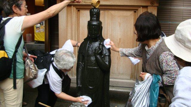 とげぬき地蔵商店街の入口に真性寺というお寺があります。江戸六地蔵の第三番が安置されていますが、二年近くの修復が終わって元の場所にお戻りになっていました。