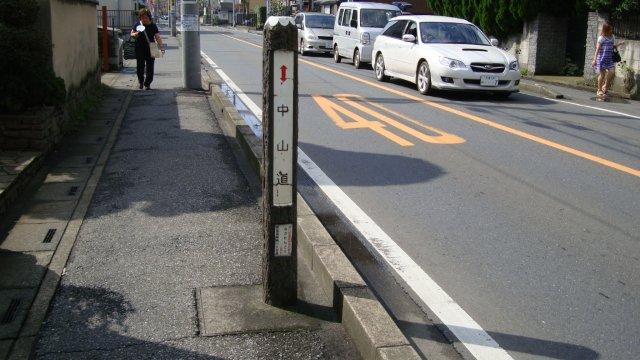 高崎線の「第三中仙道踏切」を越えますと、中山道は歩道のない田舎道になります。交通量はさほどではありませんが、大型車が通る時には道路脇に避難しなければなりません。今日は朝から真夏の日差しで超暑く、車を気にしながら歩くのは疲れます。その上、地図が5万分の一の縮尺になったもので、幾ら歩いても地図上の距離は縮まりません。北鴻巣駅近くの蓑田追分は立場(茶屋)があったそうですが、一服したい気分にかられます。今は案内板だけが立ち、日陰もありませんのでそのまま歩き続けます。