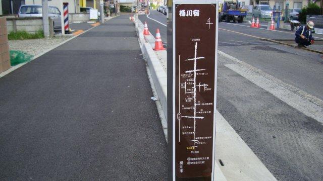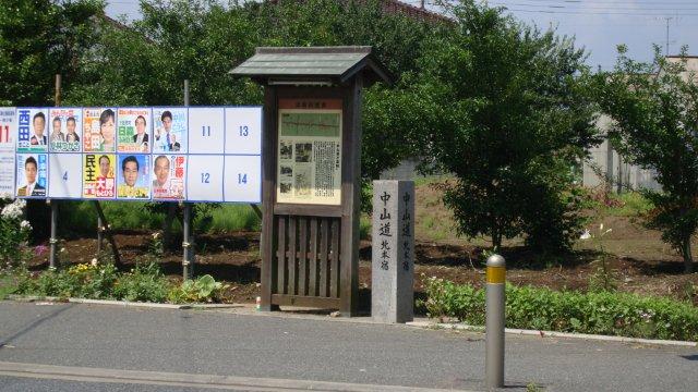 道路の両側には青々とした田んぼが広がり、稲が力強く伸びています。鴻巣から先には目立った史跡はありませんが、たまたま「吹上町指定文化財 史跡 一里塚」というペンキの薄れた木柱を見つけました。吹上町は2005年の平成町村大合併で鴻巣市に編入されましたが、宿場は置かれなかったものの、熊谷宿と鴻巣宿の間があまりにも遠距離であったために、中間地点の地の利を活かして「間の宿(あいのしゅく)」として賑わったのだそうです。