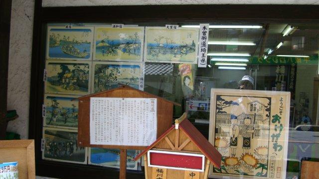 「中山道宿場館」には桶川宿のいろんな資料が置かれています。外からパチパチと写真を撮りまくっていたら、案内所の方が中に招き入れてくださいました。開館直後でお客さんがいなかったこともありますが、あれこれ親切に話しかけてこられます。どこから来たのだとか、どこまで行くのだとか。「日本橋から歩いているんですぅ」とか答えますと、「へぇ〜〜〜っつ?」とか反応されます。よほどのヒマ人にみられたのでしょう。最後には「往来手形」なる書面まで頂きました。それに紅花の種が入った袋も。家庭菜園でも借りないといけませんな。