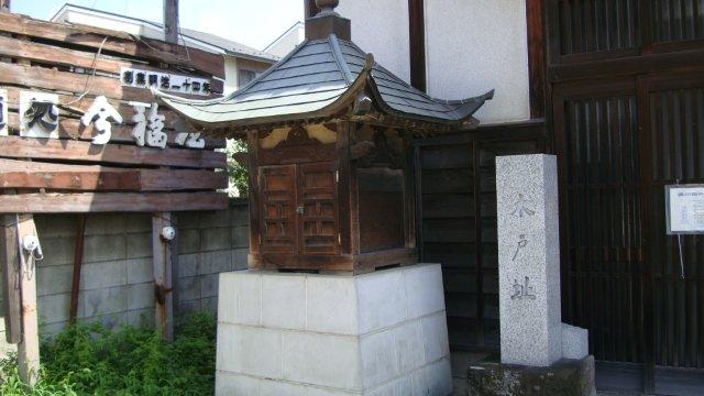 町中に入りますと、「武村旅館」と大書きされた古ぼけた木造の家屋がありました。今時、こんな年代物の和風旅館に泊まる旅人はいるのかしらと思って軒先の案内板を見ますと、「中山道 旅籠」と題して解説がありました。宿場には、大名や公家などが宿泊する本陣や脇本陣が設けられていましたが、一般庶民は旅籠に泊まったのだそうです。桶川宿は日本橋から10里(40kmくらい)余りの距離にあり、江戸を出立した旅人が夕刻に到着することが多かったため、江戸末期には36軒もの旅籠があったそうです。武村旅館は宿場町当時の旅籠の姿を今にとどめ、江戸末期の間取が現在も引き継がれているのだそうです。神棚とか土間もあって面白そうですが、実際に泊まる人はいるのでしょうか?