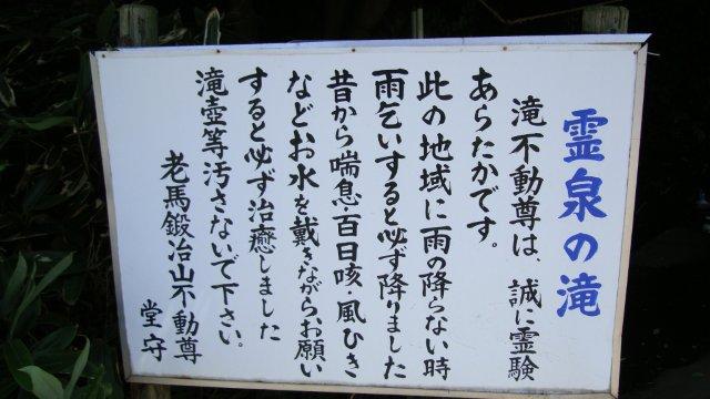 高台に瀟洒な住宅が立ち並ぶあゆみが丘の住宅街の先の崖下に「霊泉の滝(不動の滝)」があります。現在でもパイプから水が出て飲み水に使われているとのことですが(煮沸してから使うよう注意書きがありましたが)、水場の乏しかった大山街道では旅人の貴重なオアシスだったそうです。