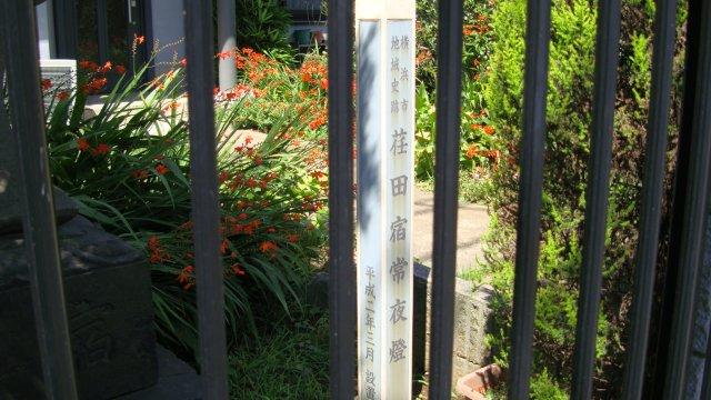 荏田村には大山街道の宿場が置かれ、江戸を発った旅人が一日目の夜に泊まったのだそうです。起伏の激しい砂利道を草鞋履きで歩いたのでしょうから、今から思えば驚異的なスピードです。国道246号線と交わる荏田交差点手前の民家の庭に、「荏田宿常夜燈」が保存されています。柵があって道路からよく見えないのが残念です。