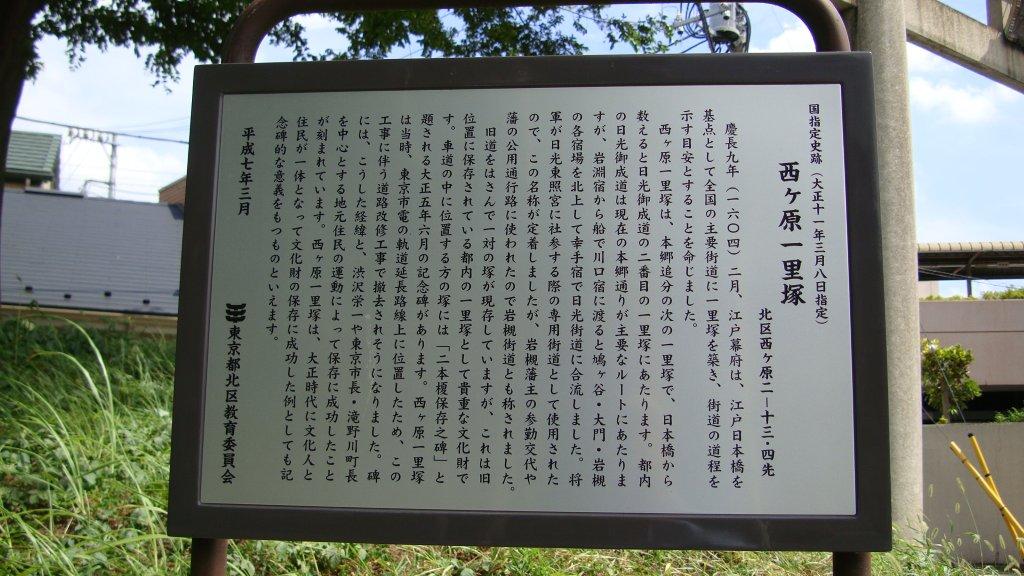 本郷通りをひたすら進みます。この界隈には見どころが多く、正行寺のとうがらし地蔵、浄心寺の布袋像、駒込土物店(つちものだな)跡、南谷寺の目赤不動、八百屋お七縁の吉祥寺、芥川賞作家三浦哲郎の名作「忍ぶ川」縁の鮨店「思い川」、六義園、旧古河庭園などなど、時間があれば立ち寄ってみたいものです。西ヶ原一里塚は旧中山道の志村一里塚と並んで、一対の完全な形で現存する都内では数少ない史跡です。