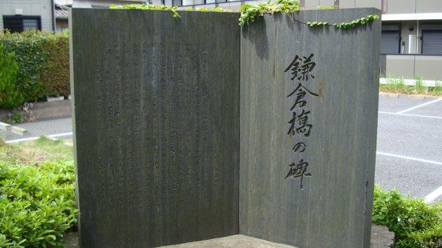 右折して東に向かいますと、北本通りに入ります。ここには岩淵宿が置かれたそうですが、現在では殆ど痕跡は残っていません。その先で新荒川橋を渡ります。新河岸川と荒川の2つの川を跨ぐ長大な橋ですが、手前の川は新岩淵水門の先で隅田川になっています。荒川を渡りますと埼玉県になります。荒川大橋交差点を左折し、細い坂道を下りますと小さな緑地があります。奥には「鎌倉橋の碑」があります。それによりますと、鎌倉橋はかつて荒川のかたわら舟戸が原を流れる小川に架かる橋だったそうです。ここから奥州へ向かう枢要な鎌倉街道が延びていたことから鎌倉橋と呼ばれるようになり、源義経も平泉から挙兵した際に通ったのだそうです。