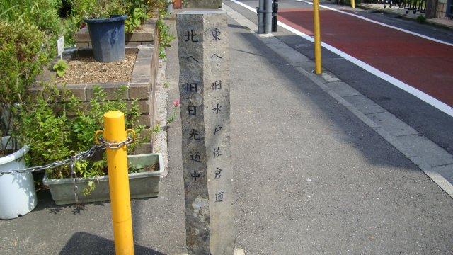 千住大橋を渡り、足立市場前から延びる旧日光街道を進みます。荒川の土手に突き当たる手前に道標があり、「東へ 旧水戸佐倉道 北へ 旧日光道中」と書かれています。何回か通った筈ですが、この道標には気が付きませんでした。