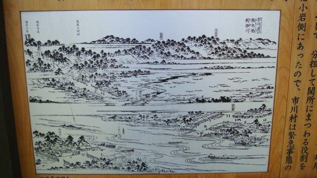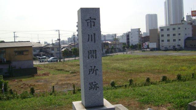 今日も良いお天気でした。一段落した暑さがまたぶり返してきたようで、今年の夏はまだまだ続きそうです。先日の中断地点である京成江戸川駅から佐倉街道の歩きを再開します。終点の佐倉城址公園までは未だ30km以上あります。今日中に辿りつけるでしょうか?江戸川駅から駅前通りを少し進んで、国道14号線に出ます。直ぐに江戸川を市川橋で渡ります。江戸時代には幕府の方針で橋が架けられなかったため、佐倉街道は小岩と市川の間を舟で渡っていたのだそうです。実際に使われた渡舟場の場所は度重なる江戸川の改修でもはや特定できなくなりましたが、千葉県側の土手の上には「市川関所跡」の案内板が建てられています。佐倉街道は房総大名の参勤交代にも使われたそうですが、馬や荷物を渡し舟で運ぶには大変な労力を要したことでしょう。