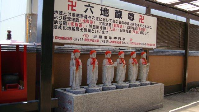 佐倉街道は船橋市海神の交番前二股路で千葉街道と分かれます。でも、船橋市前原西までは東金街道と同じルートになっています。前原西の「成田街道入り口」からは成田街道と表記されますので、地図上で佐倉街道の名前を見つけるのは難しいですね。日光街道・水戸街道・千葉街道・東金街道・成田街道といった主要街道と多くの区間が重なっているために、歴史ある佐倉街道が目立たない存在になったのは残念です。話を戻して、船橋市海神の交番前二股路で千葉街道と分かれ、総武線の線路下を薄暗い地下道で渡ります。線路と反対側に出た先に、地蔵院と云うお寺があります。「関東百八地蔵尊の第八十二番札所」とありますが、札所にもいろいろありますね。お寺の入り口には「六地蔵尊」、奥には「お願い地蔵尊」が祀られています。地蔵は六道の地獄・餓鬼・畜生・修羅・人間・天上界をめぐって亡者を救うという思想があるそうですが、それに加えてお願いも叶えて下さるとは有り難いですね。