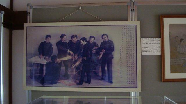 記念館内には当時の解剖図とか手術用具とかの資料が展示されています。手術の様子を描いた絵では、何故か大勢の屈強な助手達が患者を押さえつけています。外科手術では麻酔を危険と見做して使わなかったそうで、手術(実験と呼んでいたそうな!)の様子を記録した中には、「手術ノ間患者痛苦スルノ景況甚シカラズ・・・」とあります。そりゃぁそうでしょうとも!でも、手術がうまくいったのか、最後には「・・・大毒性ナル麻薬ヲ用フルノ愚ヲサトル」とも書かれています。現代に生きていて良かったですぅ。。。