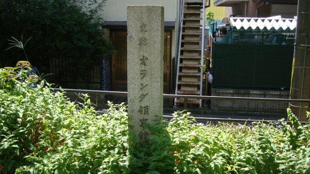 今日から9月。昔なら秋の訪れが感じられる頃ですが、今年は相変わらずの残暑が続いています。残暑というより、盛夏そのものと云った方がしっくりくる暑さです。地球温暖化の影響で、ゲリラ豪雨や超大型台風の襲来などの異常気象が多発し、河川の暗渠化や地下街の拡大といった都市化の進展も相まって、首都沈没の事態も起こり得ると昨夜のNHKスペシャルで警告していました。まるでハリウッドのパニック映画のようなCGの映像が流れていましたが、あり得ないことではないとのこと。荒川が決壊すると、東京の地下鉄は短時間で殆ど水没すると予測されているとのことです。早速、ワインとチーズを備蓄しておかないといけませんね。それはそれとして、今日は東海道の続きを歩きます。京急の神奈川新町駅で電車を降り、駅の脇にある神奈川通東公園に向かいます。先日は見落としていたのですが、公園の脇に「史跡 オランダ領事館跡」の石柱が建っています。横浜開港当時、各国の領事館は主に近在のお寺に置かれましたが、この地にあった長延寺にオランダ領事館が置かれたのだそうです。