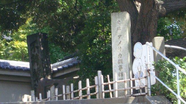 「神奈川歴史の道」は神奈川通東公園から始まりますが、ルートは一本道ではないようです。あまり細かいことは気にしないで、適当に歩いていきます。神奈川小学校の塀には、東海道神奈川宿の当時の様子がタイルに描かれています。神奈川小学校脇には「上無川(かみなしがわ)」が流れていて、「かながわ」の地名はその「み」と「し」を略したものだという説があるそうです。ホントかなぁ。。。このあたりには神社やお寺が多いですね。成仏寺にはヘボン式ローマ字を考案したアメリカ人宣教師のヘボンが住んでいたそうです。神奈川宿は、安政元年の神奈川条約締結の舞台となったため、お寺は領事館だけではなく、外国人の宿舎としても使われたんですね。