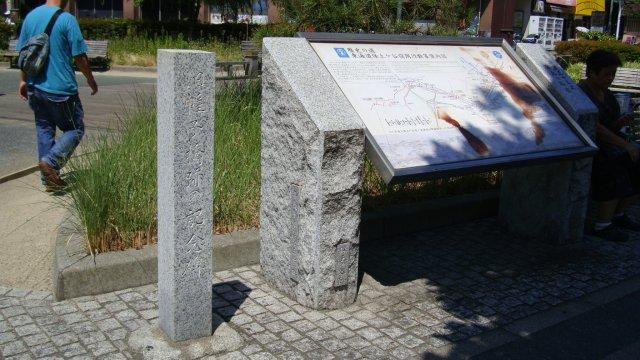 大坂を登った先で、不動坂で分かれたもう一方の国道1号線と一緒になります。片車線が昔の道らしく、道路の中央に松並木が続いています。でも、大型トラックがひっきりなしに走っていますので、排気ガスで空気は最悪です。環状4号線と交差する原宿には日本橋から11番目の一里塚跡があります。吹上の一里塚とも呼ばれましたが、取り壊されて現在では残っていません。
