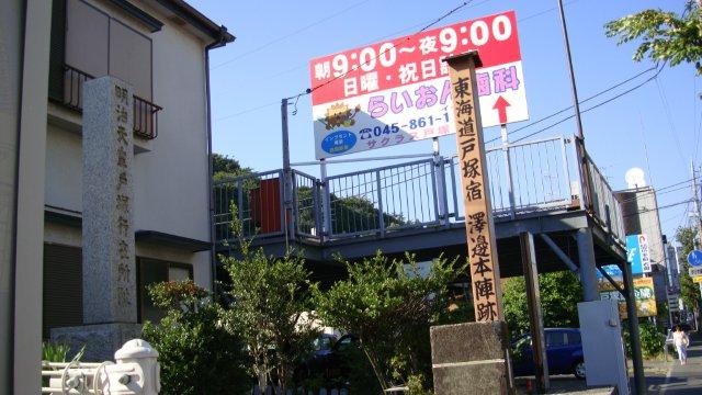 JRの線路を越え、国道1号線に突き当たったところに保土ヶ谷宿本陣跡の案内板があります。この本陣は苅部家が代々勤めてきましたが、現在でも子孫の方が跡地に住んでおられるようです。本陣が混雑した際などは脇本陣も使われましたが、保土ヶ谷宿には藤屋・水屋・大金子屋の3つの脇本陣があり、藤屋跡には案内板が建っています。大金子屋は「まちかど博物館」として、建物の一部が保存されています。
