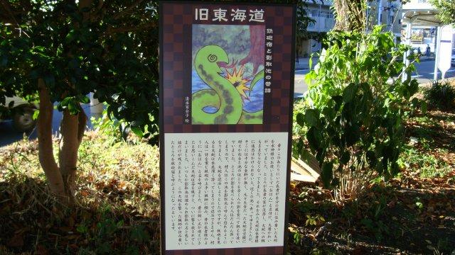 影取町の藤沢バイパス出口で国道1号線と分かれ、県道30号線(戸塚茅ヶ崎線)を進みます。並木道が続き、旧道らしくていいですね。鉄砲宿という地名がありますね。昔この辺りに住んでいた長者が自分の蔵に住み着いた大蛇を水神様のお使いとして「おはん」と名付けかわいがっていました。ところが長者の家が没落し、大蛇への餌もままならなくなってきたので、大蛇は長者様に迷惑をかけまいと近くの池に去っていきました。池には十分な食料がなかったので、大蛇は空腹に耐えかねて人の影を食べて飢えを凌ぎましたが、影を食べられた人は段々と弱ってしまい、村人はこの池を影取池と呼んで恐れたのだそうです。村人は一計を案じ、猟師に頼んで長者様のように「おはん」と呼びかけたところ、大蛇は長者様が迎えに来たものと思い込んで姿を現し、猟師に撃ち殺されたのだそうです。影取の名前は町名に、猟師の住んでいたところは鉄砲宿と呼ばれるようになりました。
