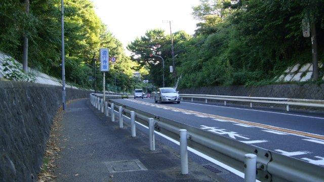 藤沢橋に向かって緩い下りの遊行寺坂が続いています。両側は一段と高くなっていますが、道路の建設に際して旧東海道を掘り下げたからなのだとか。ここには一里塚もあったのだそうですが、今は痕跡もありません。