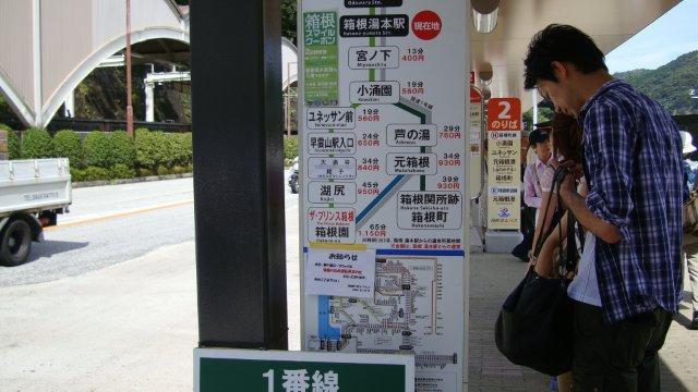 後ろ髪を引かれる思いでお店を出て、箱根を目指します。箱根湯本駅に着いたのは2時前でした。箱根宿の史跡も見たいので、箱根関所跡にでも行ってみようと思います。案内所で地図をもらって調べて見たら、関所跡は峠を越えた遥か先の芦ノ湖の南端にあって、ここからバスで40分近くかかるとのこと。箱根の山は天下の険と云いますが、本当の箱根越えはこの先から始まります。峠を縫うように進む国道はミミズのように曲がりくねり、とても今から歩いて行ける距離ではありません。