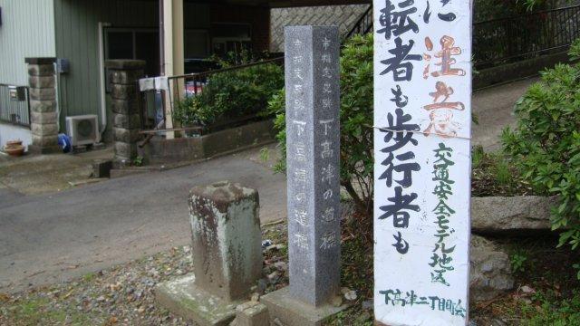 国道354号線に合流して医療センター入口三叉路を右手に進みます。急に山間の道路に入り込んだように大木が生い茂っています。ほどなく、道路の奥に霞ヶ浦医療センターの正門が見えてきます。建物が見えないくらい広大な敷地ですが、元々は霞ヶ浦海軍病院として創設され、現在は国立病院機構に組み込まれているのだそうです。そこから100mほど進んだ先の曲がり角に「下高津の道標」が建っています。道標は古くなって文字を判読するのは困難ですが、案内の石柱には「この道標は水戸街道と坂東街道の交差点に位置し、享保十八年(1733年)に東崎の観音講の人々によって建てられたものである」と書かれています。確かに細い道路が交差しているのですが、街道とは程遠い雰囲気です。坂東街道はどこを通っているのでしょうか?