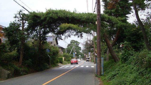 下妻につながる国道125号線手前から右に折れ、旧道を進みます。沿道には水戸街道の松並木が今も残っていて、とても風情のあるところです。坂道を上りますと、日立電線の広大な敷地が広がっています。ゴルフ場のように手入れされた植え込みは工場とは思えない美しさです。工場の案内板によりますと、ここを「木田余(きだまり)の杜」として自然保護区を設立し、後世に伝えていくことにしたそうです。雄大な筑波山系に見立てた四季折々の植物を配し、霞ヶ浦を模したビオトープでは希少植生物を育成して霞ヶ浦に移植して再生に寄与しているそうです。水戸街道には旅人を暑さ・寒さから守るために松が植えられましたが、現在ではここ板谷地区だけに松並木が残っています。幹が曲がって街道を覆うように枝を広げた松の木もあり、旅人が一休みするには格好の場所だったことでしょう。