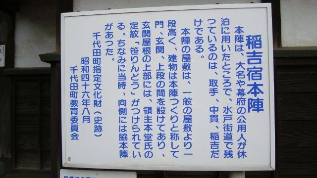 緩やかな起伏のある坂道を進んで宿場の中に入ります。稲吉宿本陣は、取手・中貫の本陣と共に水戸街道に残る希少なものです。