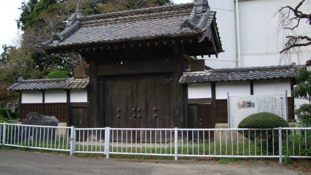 小学校は普通は立ち入り禁止なのですが、失礼して正門脇の史跡を見学させて頂きます。ちょうど下校時で生徒さんが沢山集まっています。なんとなく気恥ずかしい思いです。ここには移築された石岡藩の陣屋門もあります(陣屋とは、江戸時代に代官その他の役人が在任した建物を云います)。隣には府中城の土塁跡もあります。常陸国衛は昭和48年の石岡小学校の改築時に実施された発掘調査によってその存在が判明したのだそうです。校内にある民族資料館には詳しい資料が展示されているのでしょうけど、残念ながら休館日で入れませんでした。
