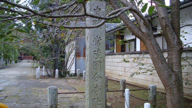 ロマンチックな名前の恋瀬川を渡って石岡市に入ります。石岡には日本橋から数えて15番目の府中宿がありました。国府7丁目交差点から国道6号線を離れて旧道を進みます。石岡は古代東海道の終点になったところで、常陸国の国府がありました。これを見ない手はありませんので、街道を外れて国府史跡巡りをします。国府公園・総社神社を経て、国衛(古代律令時代の役所の建物が置かれたところ)跡のある石岡小学校に向かいます。
