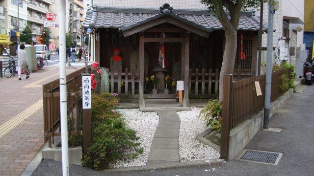 現在は市川橋で江戸川を渡りますが、江戸時代は小岩市川関所から渡しで市川に渡ったのだそうです。市川から船橋市の海神交番前三叉路まで千葉街道を進みます。三叉路で左側の細い道路に入り、総武線の線路下の地下トンネルを通って船橋市の市街地に入ります。船橋宿の入口に建つ西向地蔵尊の辺りには罪人のお仕置き場があったと云われています。
